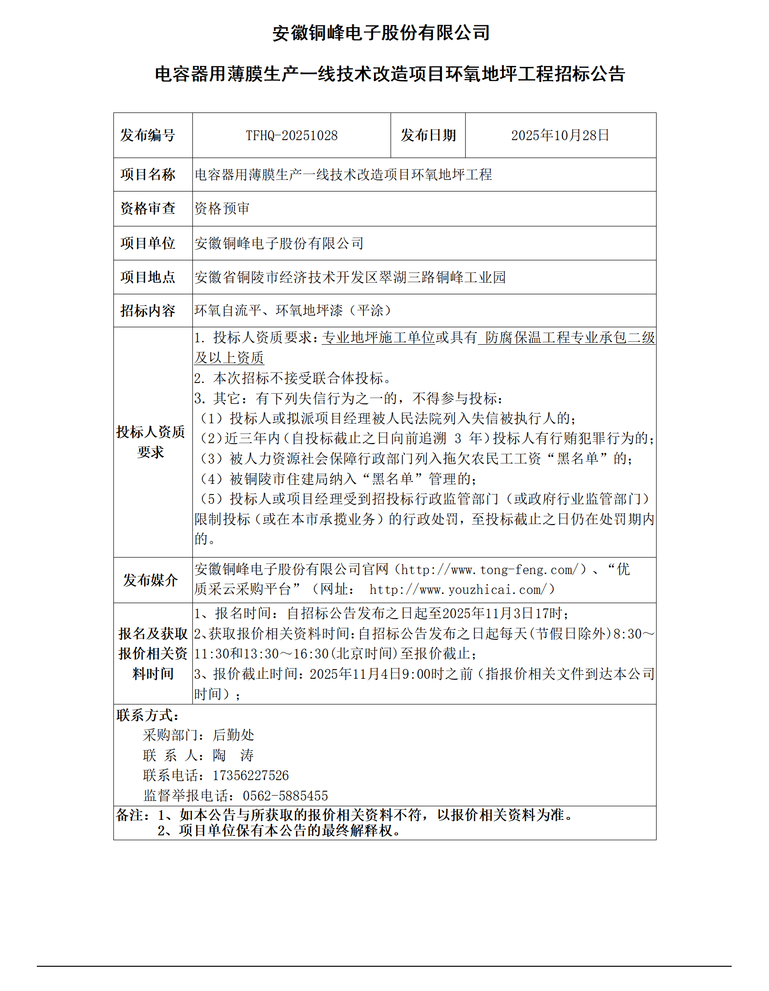 安徽銅峰電子股份有限公司 (電容器用薄膜生產(chǎn)一線技術(shù)改造項(xiàng)目環(huán)氧地坪工程 招標(biāo)公告)_01