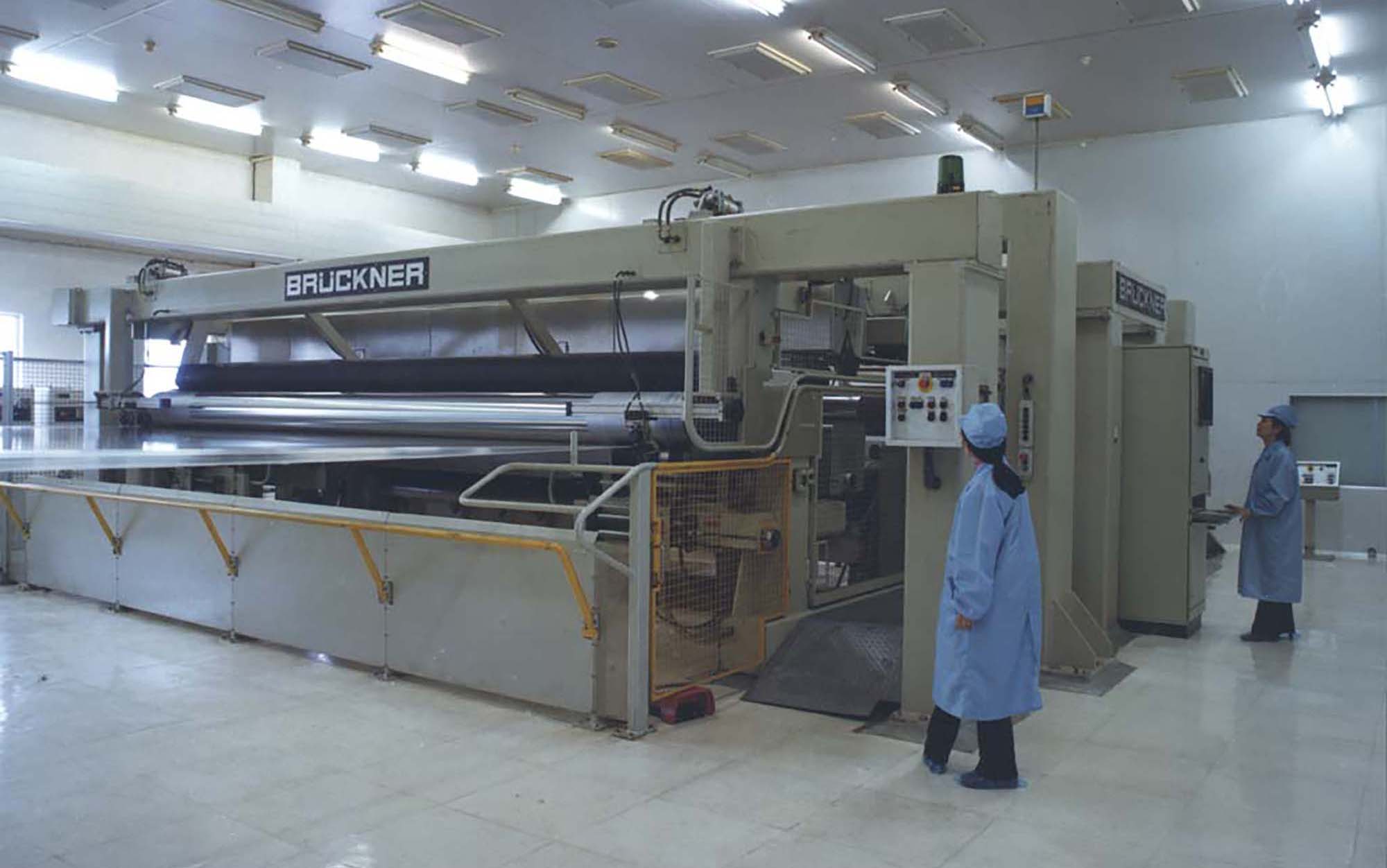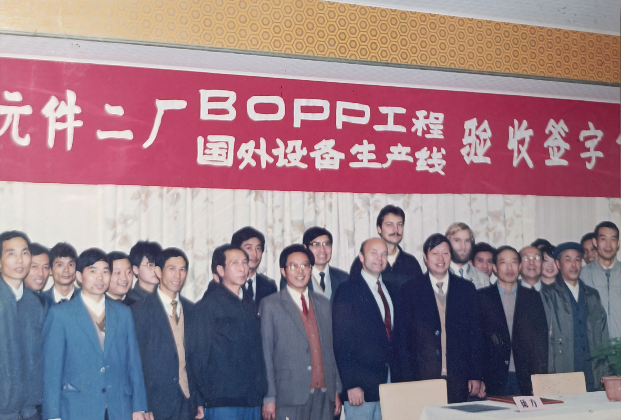銅峰“老一線”于1989年建成投產(chǎn)。上世紀80年代,當時國內(nèi)電容器用聚丙烯膜幾乎完全依賴進口,嚴重制約了我國電容器等相關產(chǎn)業(yè)的發(fā)展。銅峰公司前身銅陵市無線電元件二廠積極響應國家需求,決定從國外引進雙向拉伸電容器用聚丙烯膜生產(chǎn)線。1985年項目啟動,經(jīng)過一系列籌備工作,1986年獲得國家計委批準立項,并被列入國家 “七五” 機械電子工業(yè)重點技改項目。1988年,主線和相關輔助設備成功引進。經(jīng)過一年多的緊張建設,1989年生產(chǎn)線正式投產(chǎn)?!袄弦痪€”的建成投產(chǎn),是銅峰發(fā)展史上具有重要意義的轉折點。該線加速了銅峰公司產(chǎn)品結構調(diào)整和轉型步伐,并由此形成了全國唯一的“電工三膜”(電容薄膜、金屬化膜和薄膜電容器)一條龍的生產(chǎn)格局,使企業(yè)的經(jīng)濟規(guī)模和技術水平躍上一個新臺階。